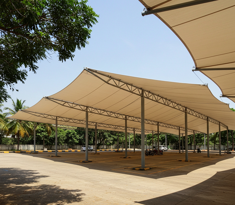 As an experienced Tensile Structure Contractor in Dera Bassi, Chandigarh, we provide complete solutions from concept design and material selection to fabrication and on-site installation. Our range includes tensile car parking sheds, walkway covers, entrance canopies, auditoriums, sports structures, and customized tensile roofing systems. Each structure is engineered to withstand wind, rain, and sunlight while maintaining long-lasting performance.
